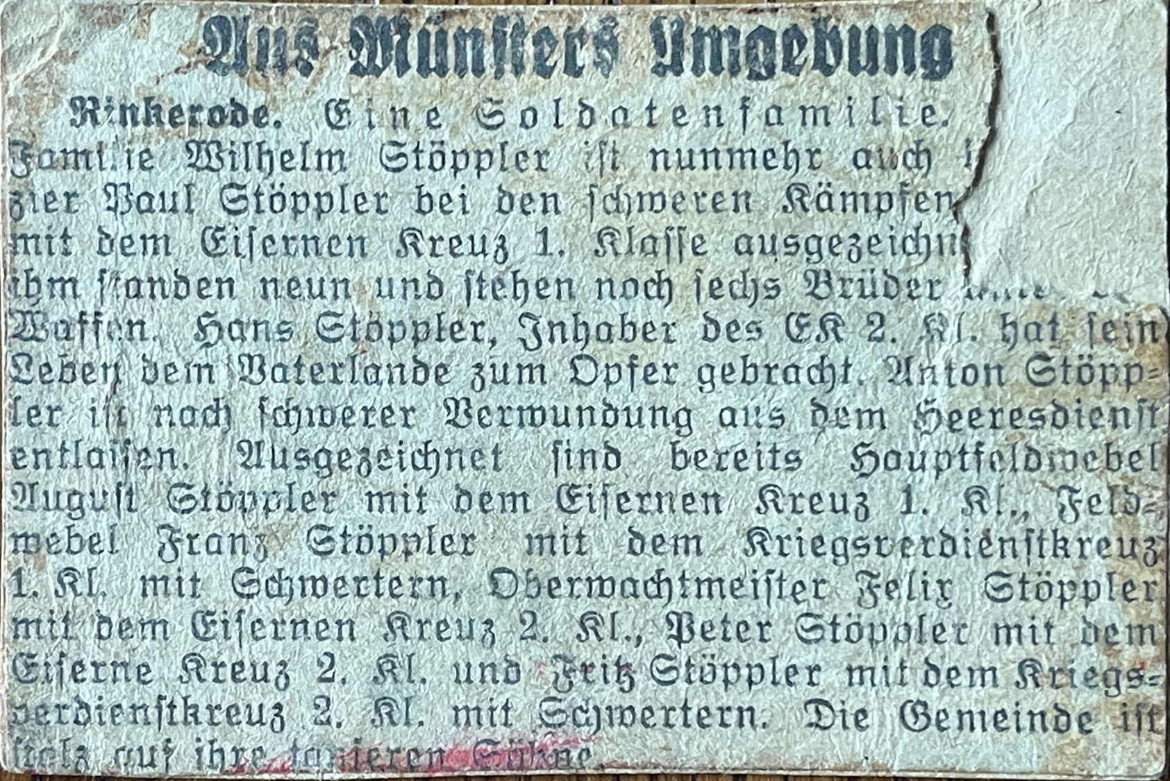 Zeitungsmeldung verm. aus 1944