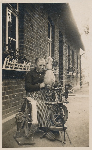 Oma Elisabeth geb. Homann am Spinnrad (~1930), Ort der Aufnahme unklar