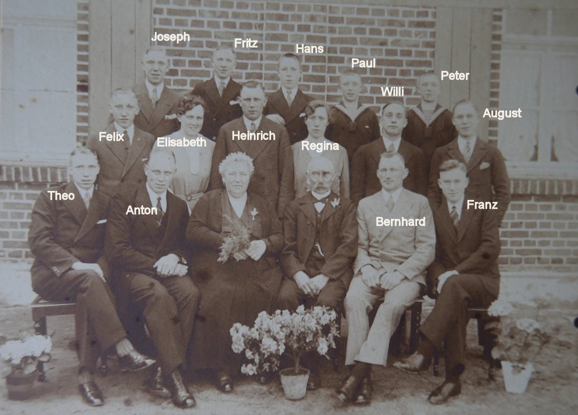 Ca. 1925 v.l. Paul, Mutter, Peter, Bernhard, Hans, Fritz, August